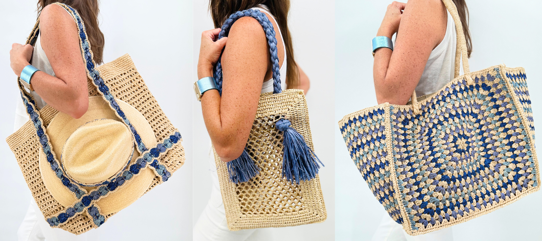Juniper Hay and French Blue Raffia Bag