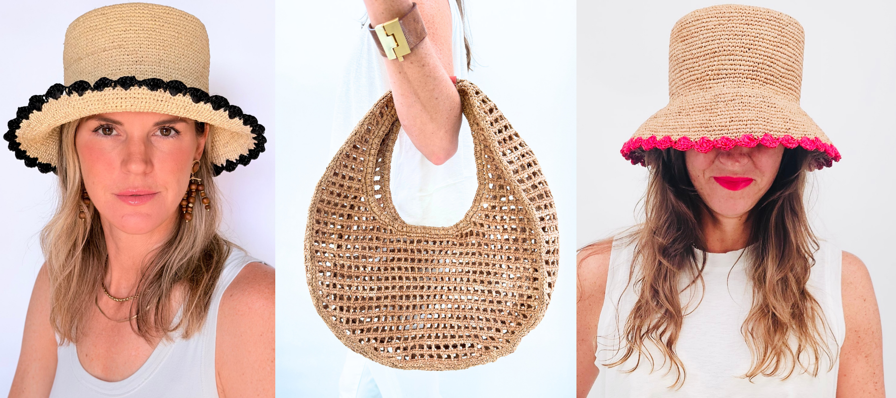 Red and Hay Striped Beau Raffia Bucket Hat