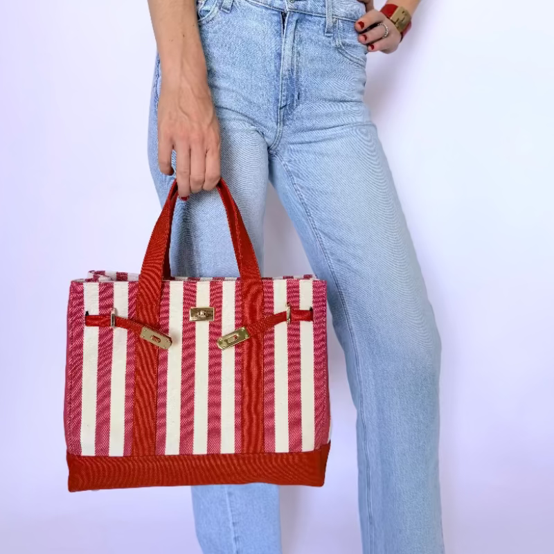 Red Herringbone Canvas Jane Bag