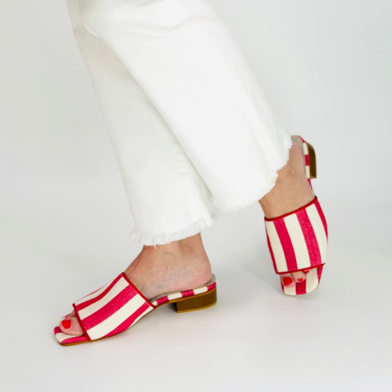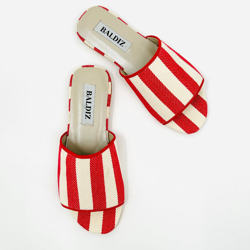 Red Herringbone Canvas Millie Slide