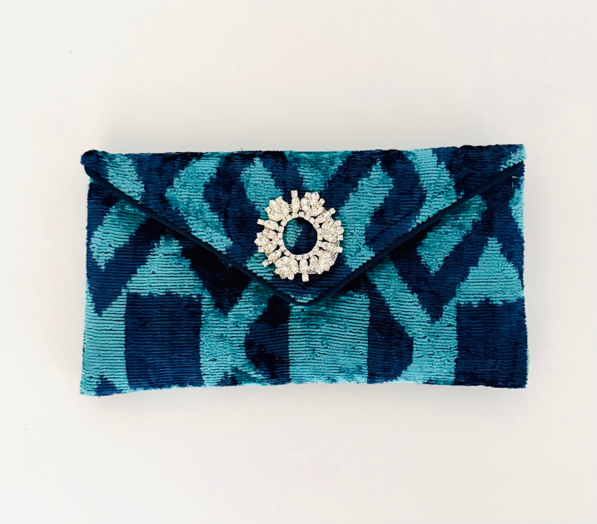Blue and Navy Patterned Lily Cocktail Clutch