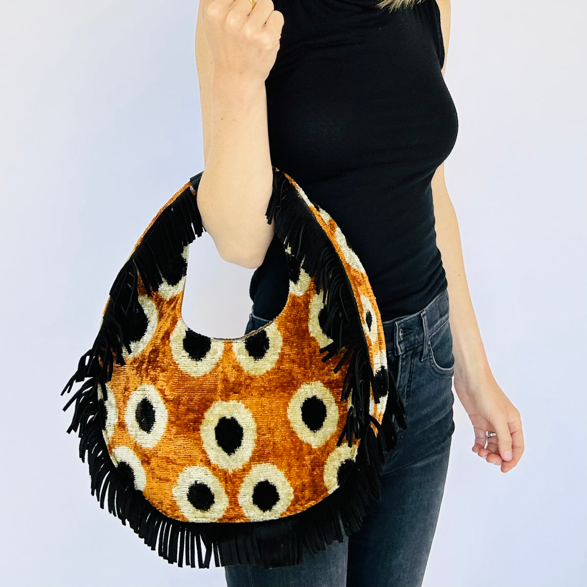 Gold with Cream and Black Dot Luca Fringe Bag