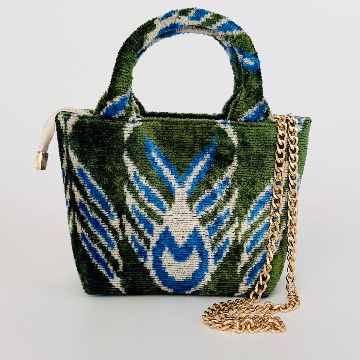 Baldiz Green and White Dot Silk Ikat Hat
